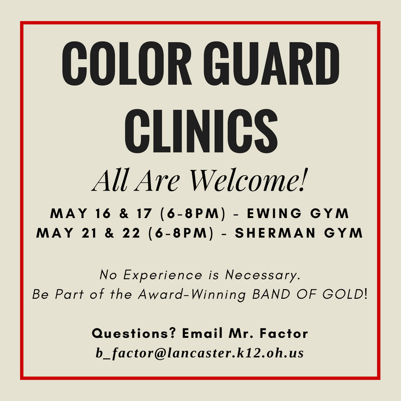 Color Guard Clinics will begin this week on Wednesday from 6-8pm. Additional dates are as follows: