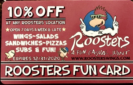We are now selling Roosters Fun Cards for $10 each with 100% of sales going into student’s accounts immediately. These cards offer 10% off meals at ALL Roosters locations. They make great stocking stuffers and gifts. Cards are good until 12/31/20.